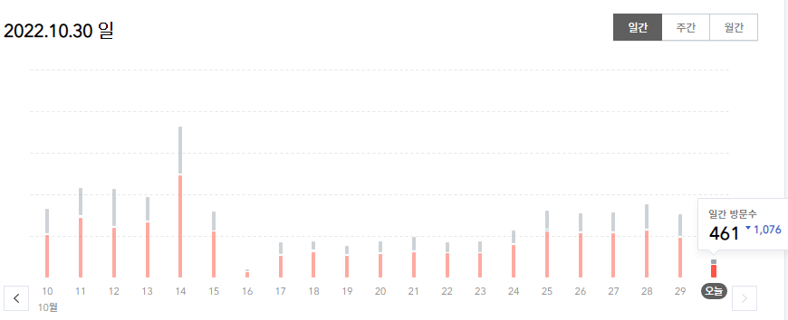 15일부터 시작된 카카오 사태로 인한 티스토리 방문자 급감은 서서히 회복하고 있습니다. 2주가 지난 현재는 대략 80% 이상 회복하였다고 볼 수 있습니다. 색인이 회복하고 네이버 유입이 회복하면서 대부분 유저들도 비슷하게 회복하셨을 겁니다.